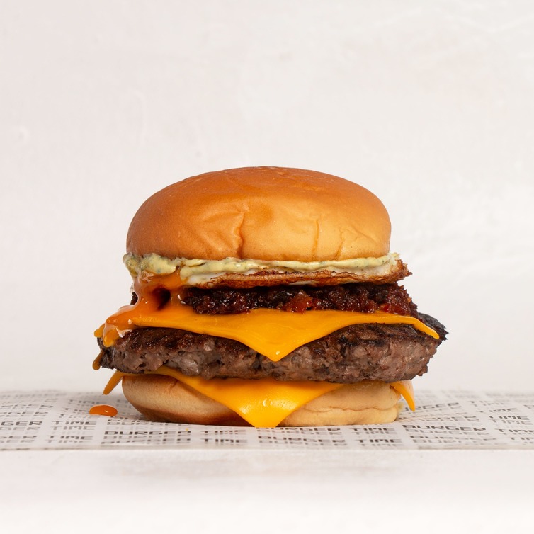 Pan Martin’s, queso cheddar, mermelada de bacon, huevo a la plancha jugoso y salsa Gold